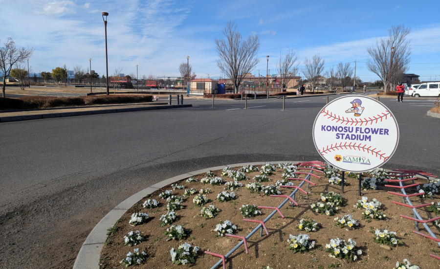 西側の駐車場が埋まっている場合は、フラワースタジアム(野球場)を挟んで東側にも広い駐車場があります。混雑時はそちらをご利用ください。