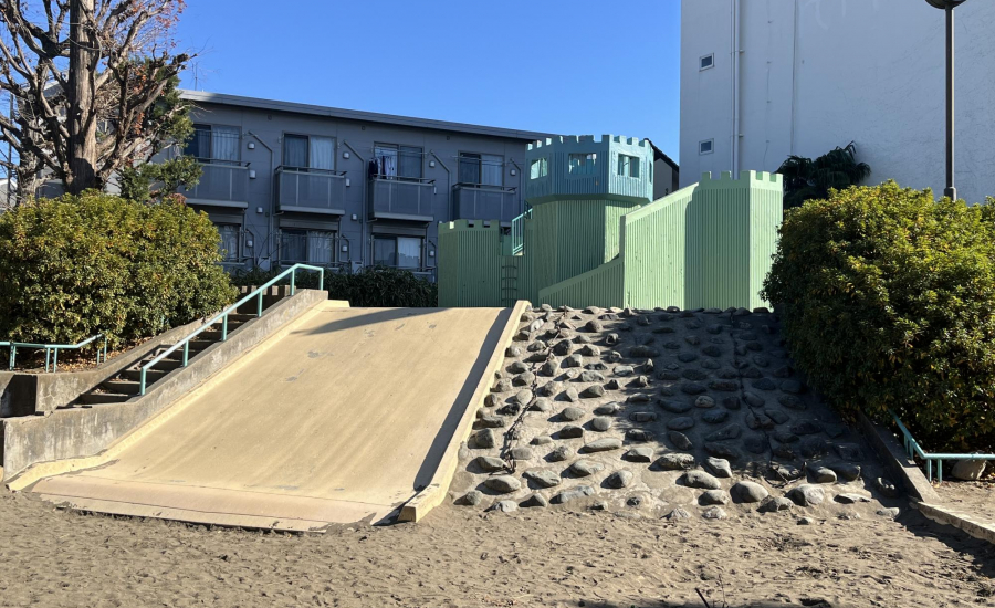園内には高低差があり、高い所には緑色のお城が立っています。見つけた瞬間、思わずテンションが上がってしまうこと間違いなしです!お城の頂上まで階段があり、公園全体を一望できますよ。眺めが気持ち良く、爽快感があります。お姫様ごっこや王子様ごっこなど、想像力を広げた遊びも楽しめそうですね。お城の下には幅の広いすべり台が設置されており、親子や友だちと一緒にすべることができます。すべり台へは階段で上れるほか、ロッククライミングのように手足を使って登ることも可能です。園内で思いきり体を動かして遊べば、子どもだけでなく大人にとっても良い運動になりますよ。