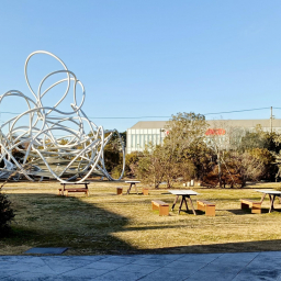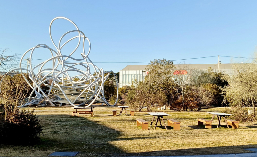 nicoeのロゴをモチーフにした立体オブジェや中庭にある独創的な遊具など、アートを感じられる空間にもワクワクしました!