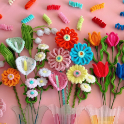 『hanamaru flower』は、カラフルでポップな世界観を特徴とするモールフラワーブランドです。唯一無二の色使いとデザインで、モールフラワーをはじめとした様々なハンドメイドプロダクトを生み出しています。