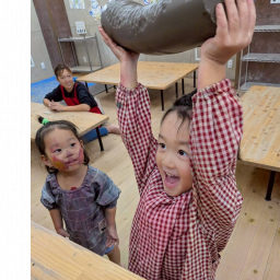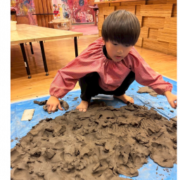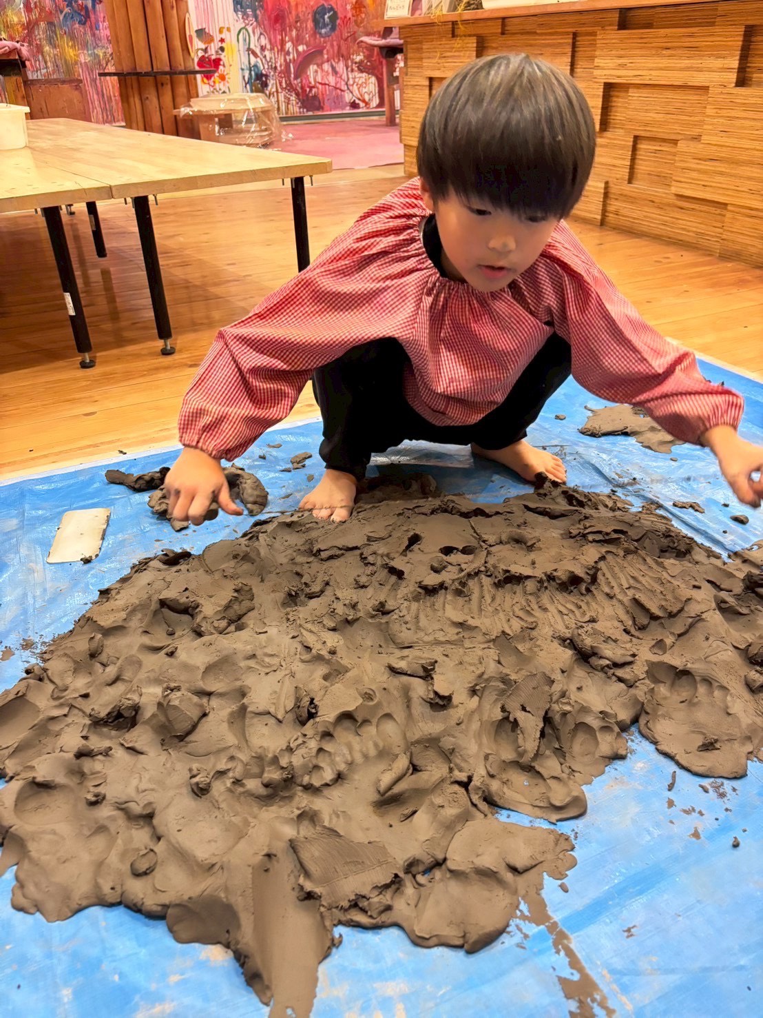 2つ目の粘土エリアでは、良質な粘土を使い、自由に造形を楽しめます。創造性の発達だけでなく、科学性や情緒の安定にも!作品を粘土テーブルに置いて眺めれば達成感も味わえます。
