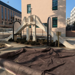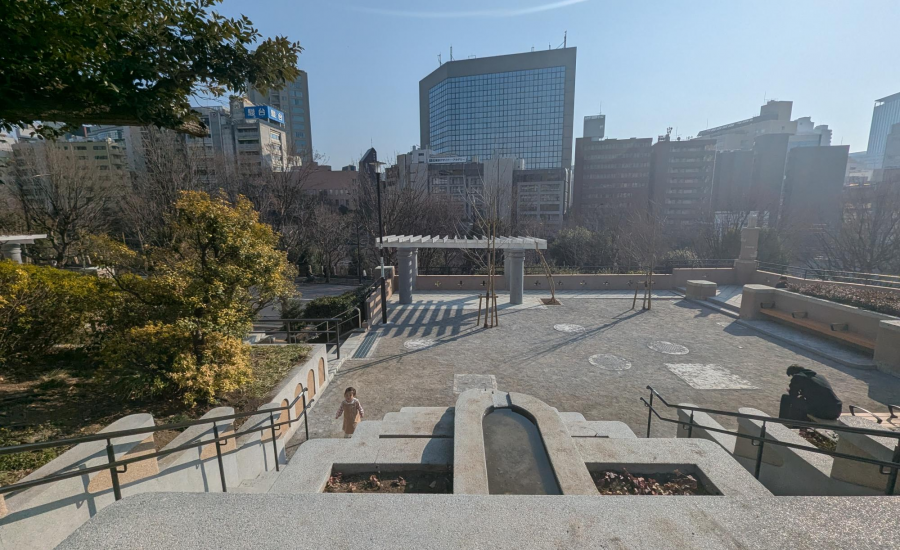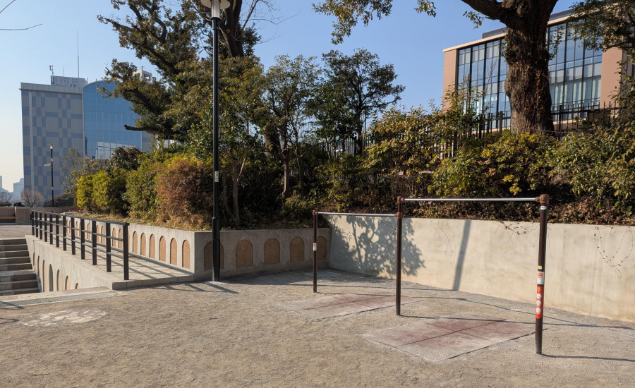 線路沿いの出入り口からは階段が多くベビーカーでは入りにくいので、建部坂を登り東側の出入り口をご利用ください。