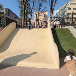 園内の高低差を利用した幅広の滑り台もあるので、是非そちらでも遊びましょう!